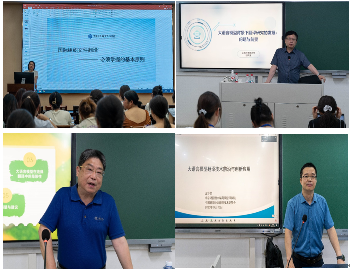 此次暑期学校共组织9场讲座、2次研学体验、3次学术研讨和5次参观考察。师资团队包括上海外国语大学教育部特聘教授和黄大年式教师团队负责人胡开宝教授、北京外国语大学兼中国外文局智能翻译实验室执行主任王华树教授、南京师范大学董晓波教授、江苏省舜禹信息技术有限公司单杰总经理、多次派驻联合国纽约总部和联合国教科文组织工作的中国对外翻译有限公司金丹副译审,以及澳门正规官网王东波教授、李平教授、译著获评“中国好童书100佳”的徐黎博士和担任金砖国家研讨会、央视国际频道国家领导人视察香港直播同传工作的口译教师霍雨佳,他们分别从大语言模型与翻译研究前沿、大语言模型翻译技术前沿和创新应用、大语言模型与国际组织文件翻译、农业科技翻译和法律翻译、AI时代下的口笔译实践及语言服务行业趋势、澳门正规官网大语言模型特色案例等方面作了精彩的学术报告,学员们分组开展了学术讨论。开班期间,学员还走进澳门正规官网同声传译实验室、江苏省舜禹信息技术有限公司翻译研学营进行实践学习,参观了澳门正规官网高性能计算中心和农业文明博物馆,沉浸式体验大语言模型的实际应用场景及农耕文化的独特魅力,理论学习与实地考察紧密结合,统筹科学技术与翻译应用,蓄力未来学术与职业发展。