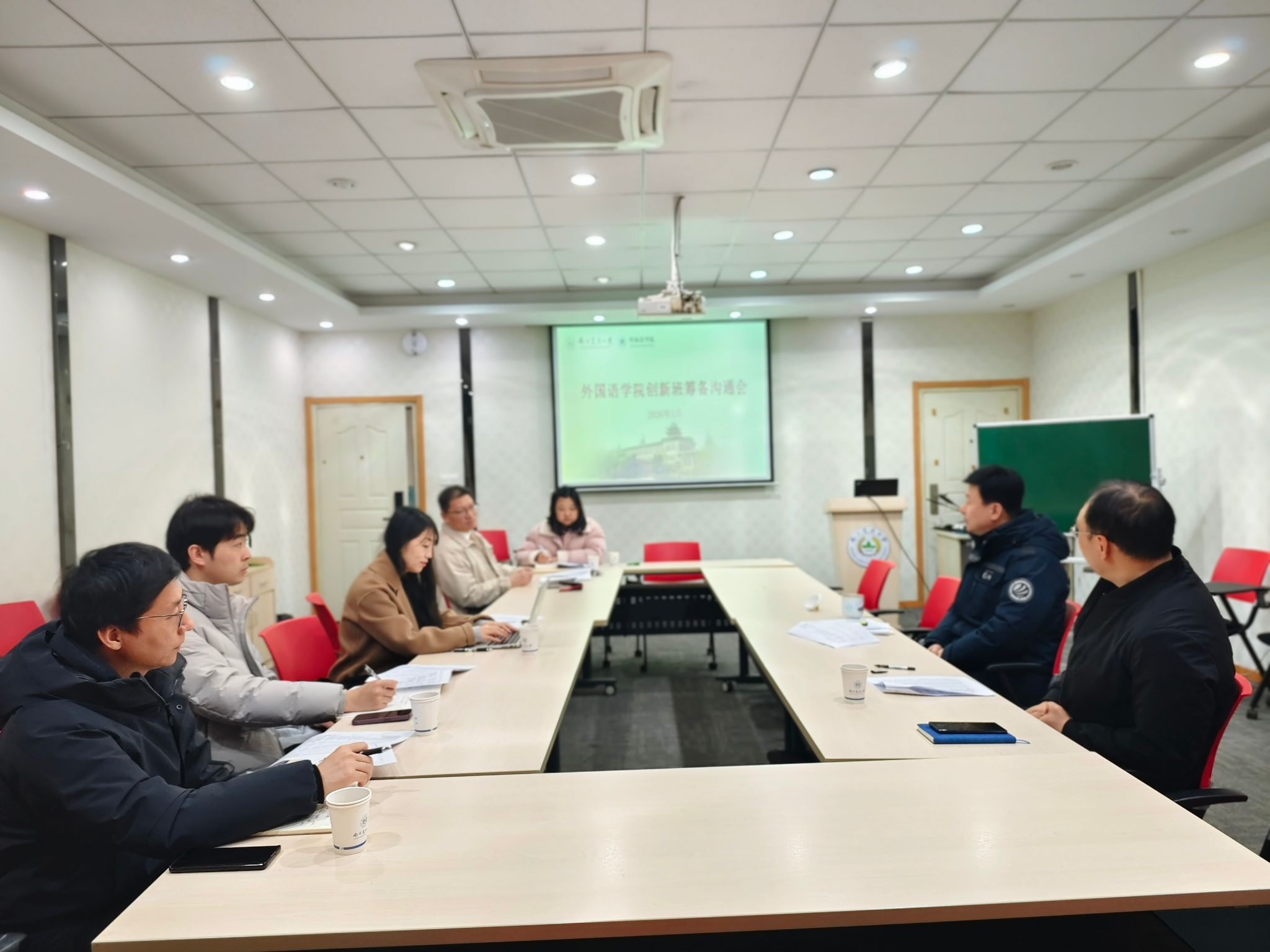 会上,马秀鹏介绍了创新班的初步建设构想,提出拟在英语、日语专业课程体系中增设人工智能相关课程模块,着力培养既具备扎实外语功底、又掌握人工智能基础理论与应用能力的复合型人才。胡滨结合自身专业背景,从技术应用视角提出课程设置建议,建议结合外语学科特点,开设人工智能导论、大模型原理与应用等相关核心课程,帮助外语专业学生建立对人工智能技术的基本认知。与会人员还就课程融入方式、实践教学环节等具体问题进行深入交流。