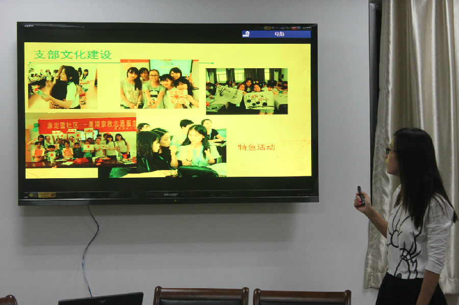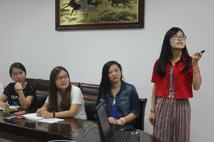 首先,顾欢欢代表研究生支部介绍了先锋支部立项文化建设中特色的英日学术沙龙活动,重点汇报了以“文明紫金山之‘标’新立异”为主题的“X”特色项目,该项目通过“给紫金山洗把脸”,“给小鸟搭窝建巢”,标示语翻译纠错等一系列活动为紫金山带来一股清新之风。“文明紫金山”项目在公示语纠错活动中紧密结合英语专业特色,对紫金山的相关公示语翻译提出了专业意见,得到了南京旅游局的肯定。