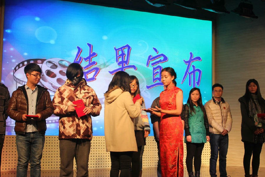 最后由两位外教竹内七奈老师和Michael Brown 老师进行点评。他们对本次比赛的各位选手给予了高度的评价,同时也指出了不足之处。比赛的最终结果是:外语院9号小组的《沉睡魔咒》和动科院5号小组的《初恋50次》并列第一,公管院15号小组的《魔发奇缘》获得第二,外语院3号小组的《银魂》、13号小组的《米兰达》和公管院11号小组的《狮子王》位居第三,其他参赛队伍均或优秀奖。