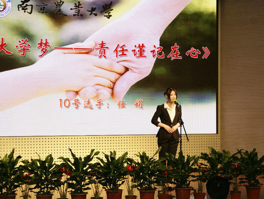 继农学院献上的小合唱《青春舞曲》后,比赛结果终于揭晓——五号选手刘炎炎以《放飞青春,追逐梦想,托起肩上华丽的岩石》、八号选手迟航以《那一年,南农和我,这些年,我与南农》获得了一等奖的佳绩,获得二等奖的是九号徐苗、十二号唐晴、十三号张浩强及十五号范宁丽,一号选手郭文、十号选手任娟、十一号选手王澍等九人获得了三等奖。