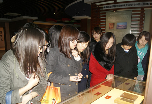 为了更好的缅怀历史、励志育人、繁荣校园文化,也为了激励南农人奋发进取、加快发展、建设世界一流农业大学,2012年11月13日,由澳门正规电子游戏平台党建班组织的参观校友馆活动如期举行,党建班班长张明丽带领澳门正规官网学生参与了此次活动。