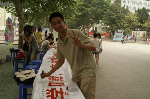 6月9日中午12点,南京农业大学毕业生文明离校倡议签名活动在玉兰路举行。