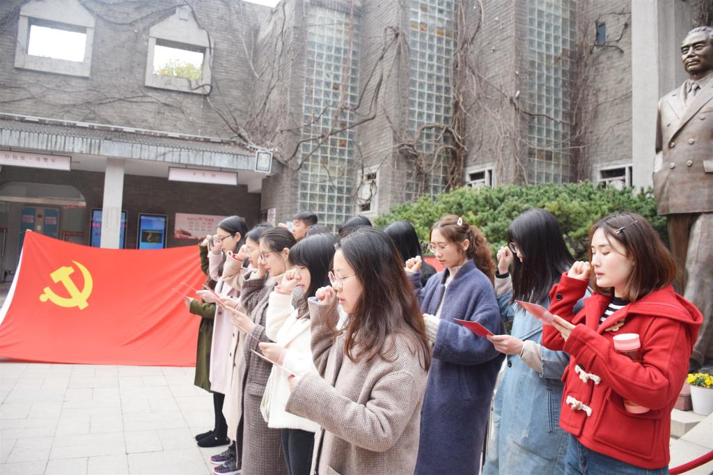 3月9日下午,澳门正规电子游戏平台2018年下半年新发展党员入党宣誓仪式在南京梅园新村纪念馆举行。17名新发展党员和党建班学生干部参加了此次宣誓活动。
